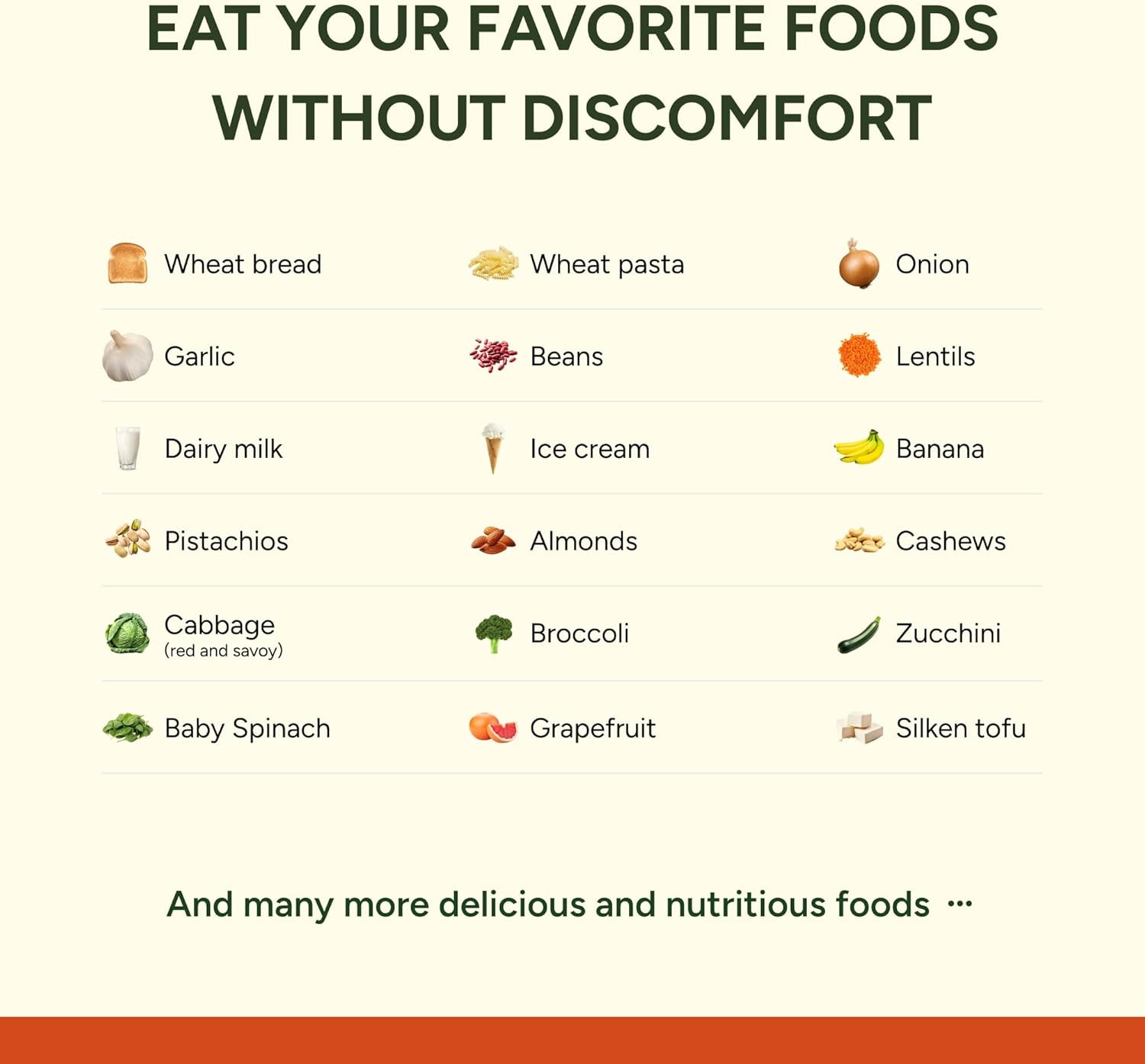 Our patent-pending formula includes a fructan hydrolase, which breaks down hard-to-digest fructans into simple sugars that are easy on your gut. Fructans are found in carbs like bread, fruits & vegetables & are often hard to digest for people with IBS.